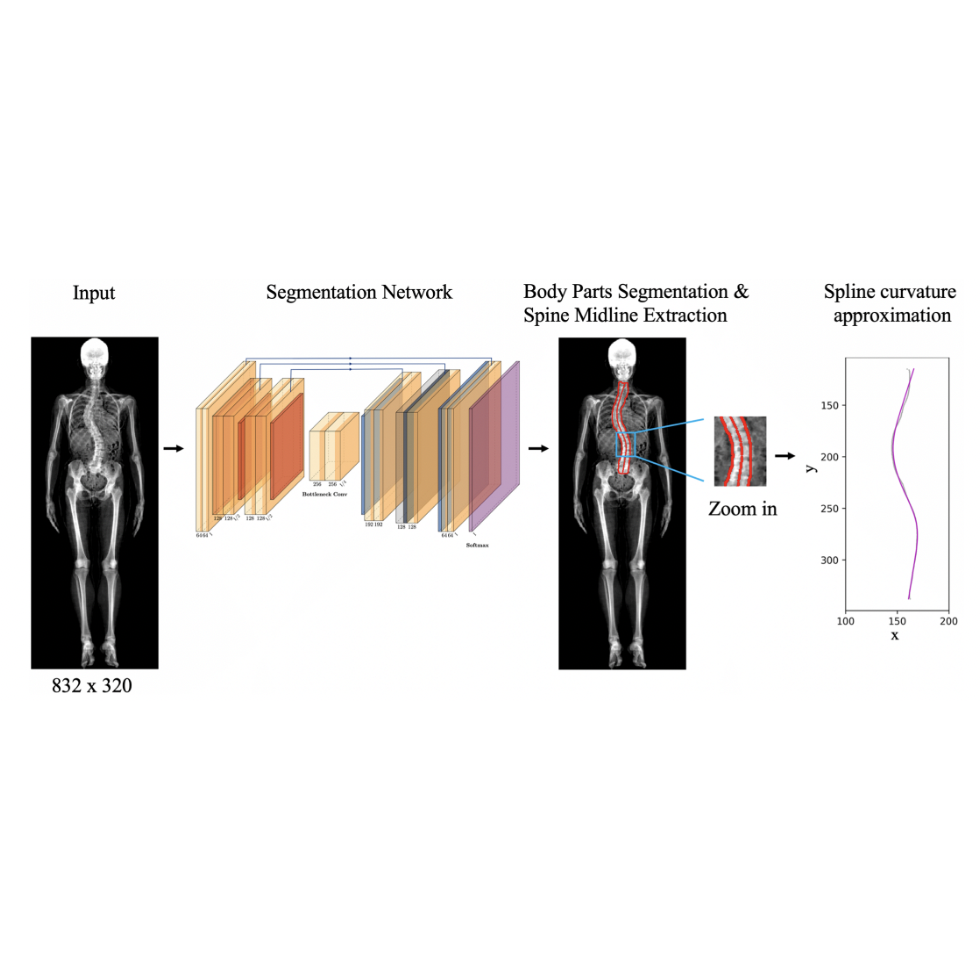 Automated Scoliosis Measurement on 2D DXA scans from UK Biobank