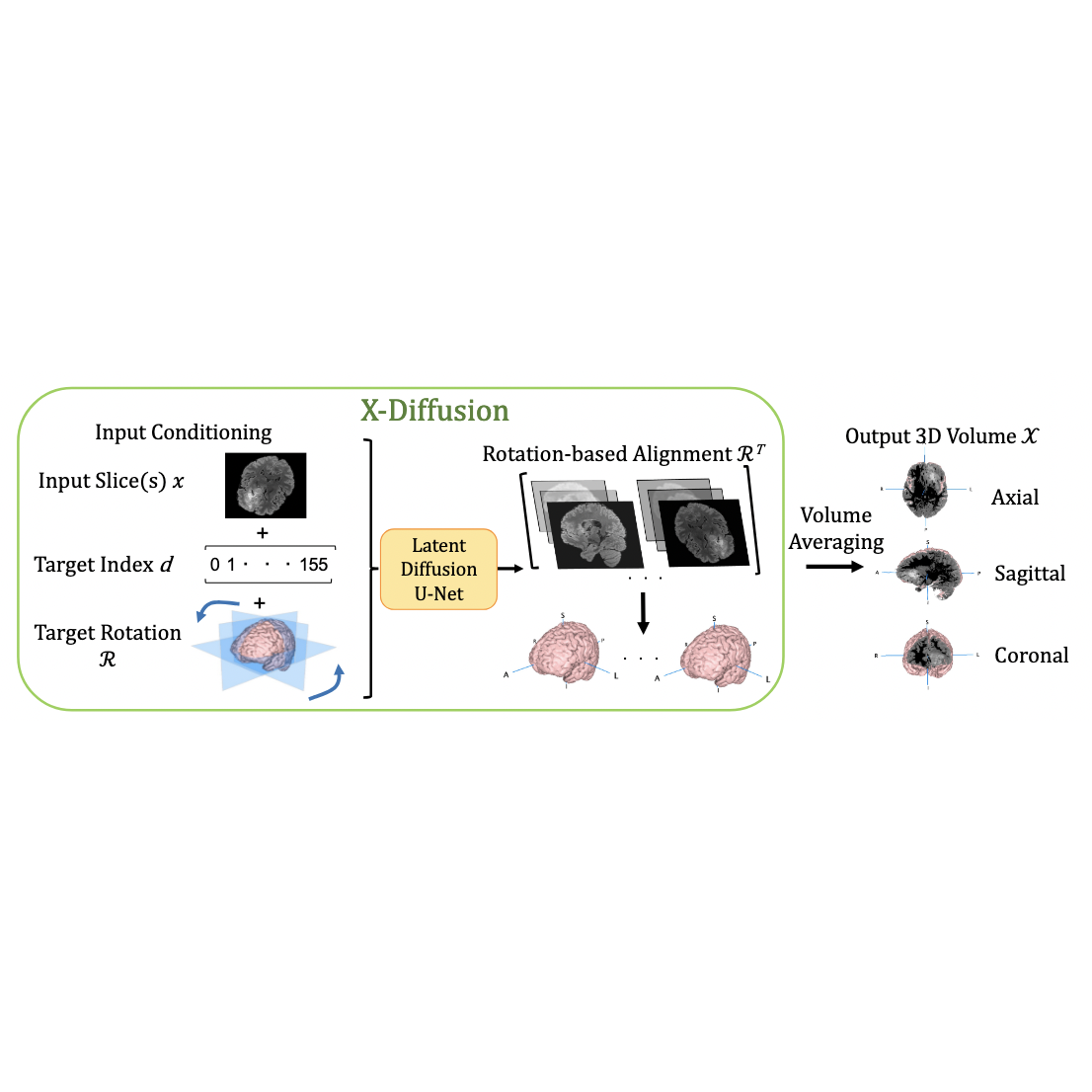 We present X-Diffusion, a cross-sectional diffusion model tailored for Magnetic Resonance Imaging (MRI) data. X- Diffusion is capable of generating the entire MRI volume from just a single MRI slice or optionally from few multiple slices, setting new benchmarks in the precision of synthesized MRIs from extremely sparse observations. The uniqueness lies in the novel view-conditional training and inference of X-Diffusion on MRI volumes, allowing for generalized MRIlearning. The generated MRIs retain essential features of the original MRI, including tumour profiles, spine curvature, brain volume, and beyond. For more information, visit our website : Project Link